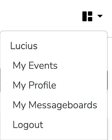 When you are logged into the kSail Events Platform, view your profile using the menu in the navigation bar at the top right of the page.
