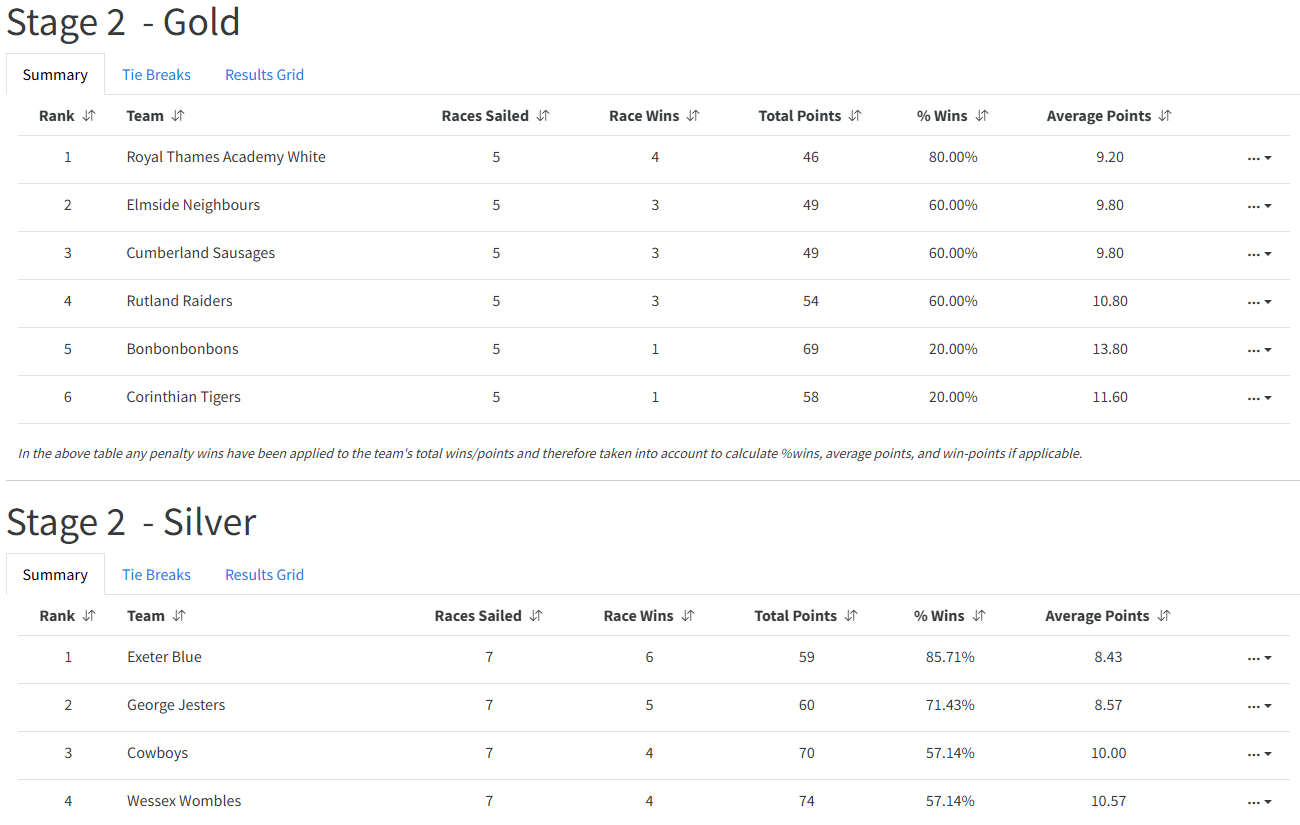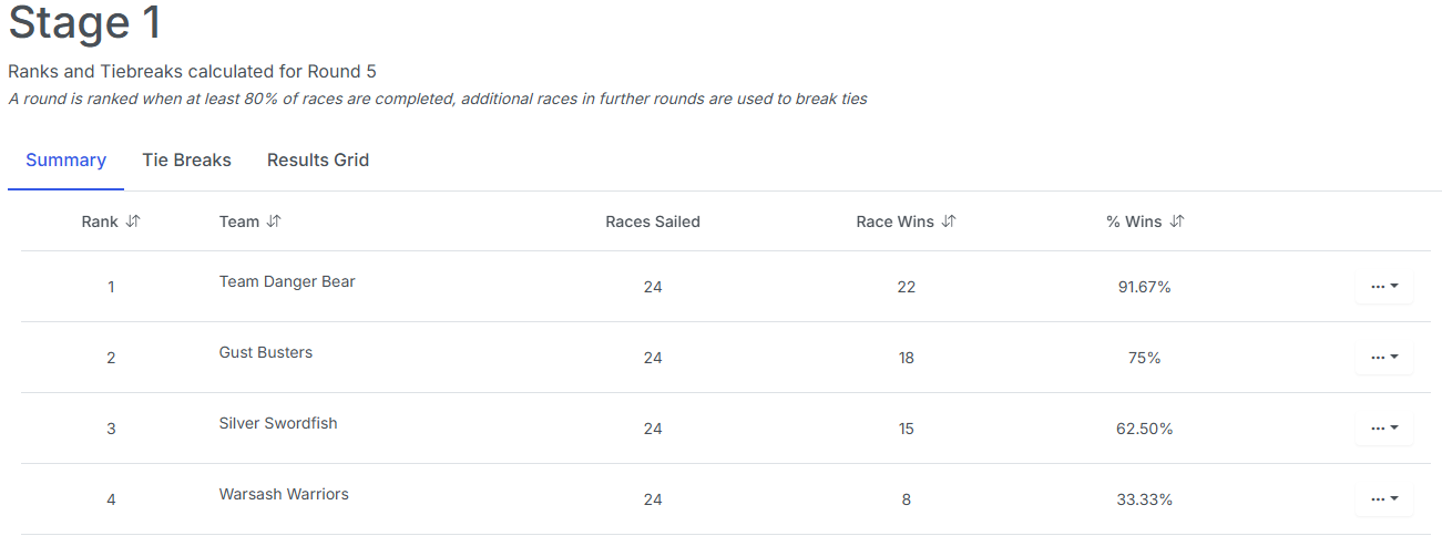 The kSail Events Results Service provides an event with multiple options for how to break ties for a range of Team Racing scheduling and format options. The following Tie Breaking formats for Team Racing are included within the System. Round Robins- ...
